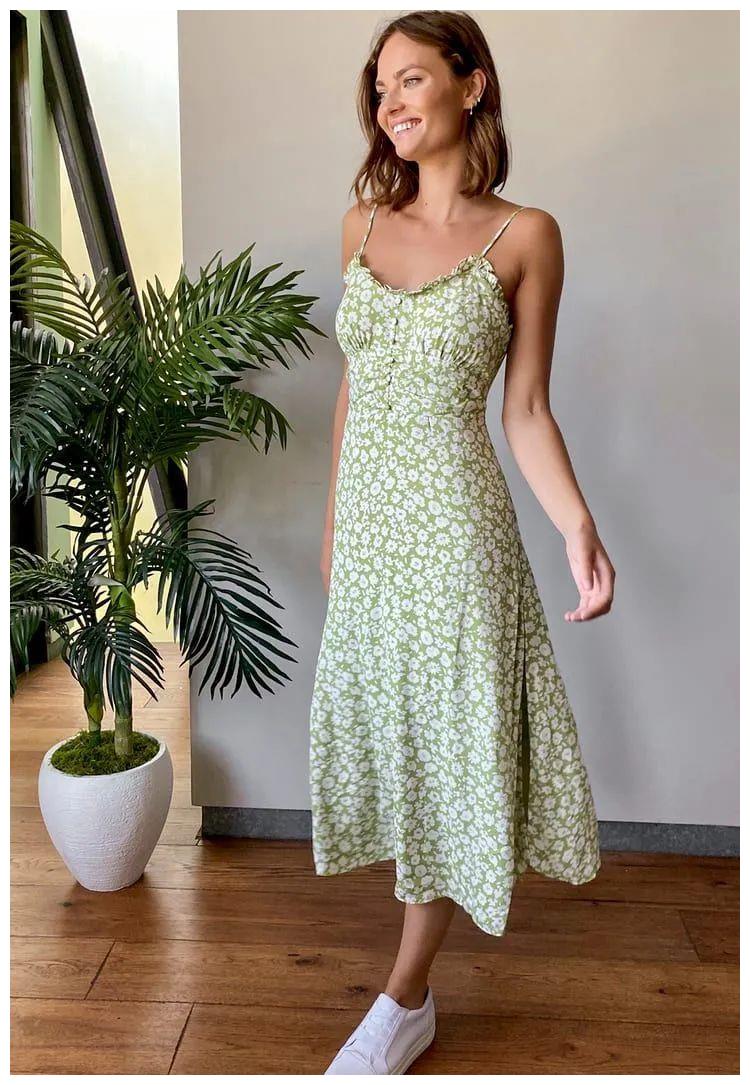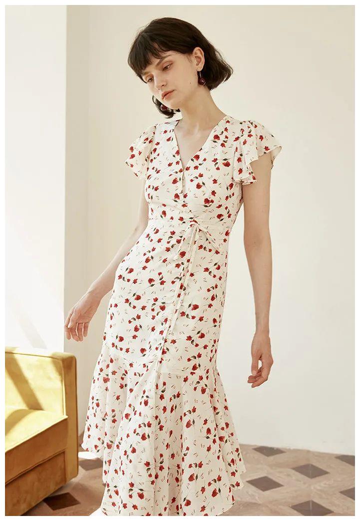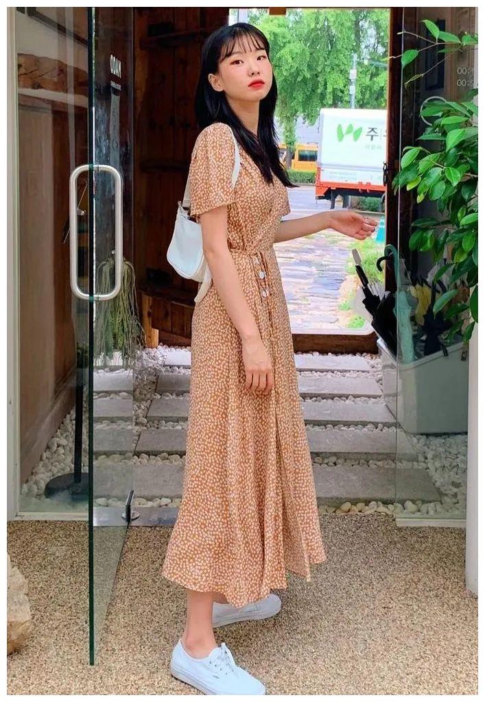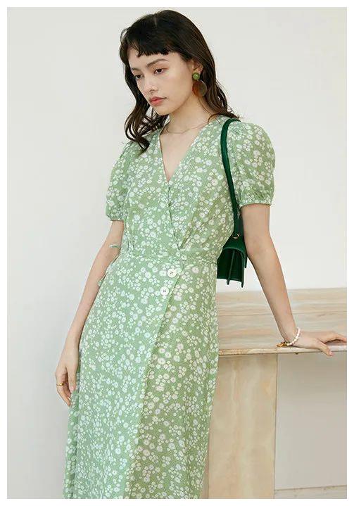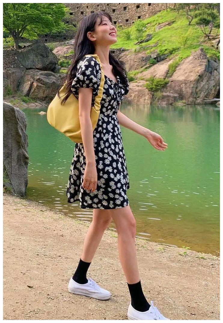 像这种养眼又清丽的单色碎花裙来搭配小白鞋,就绝对是谁穿都好看的夏日神仙组合。