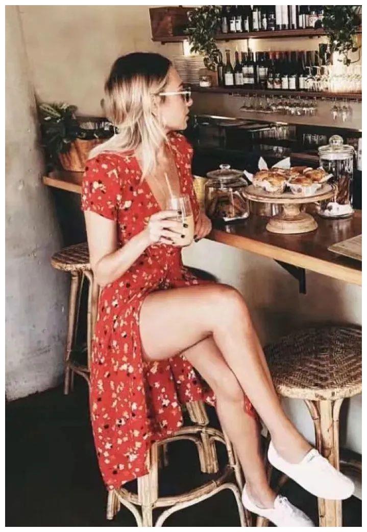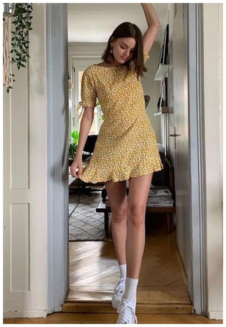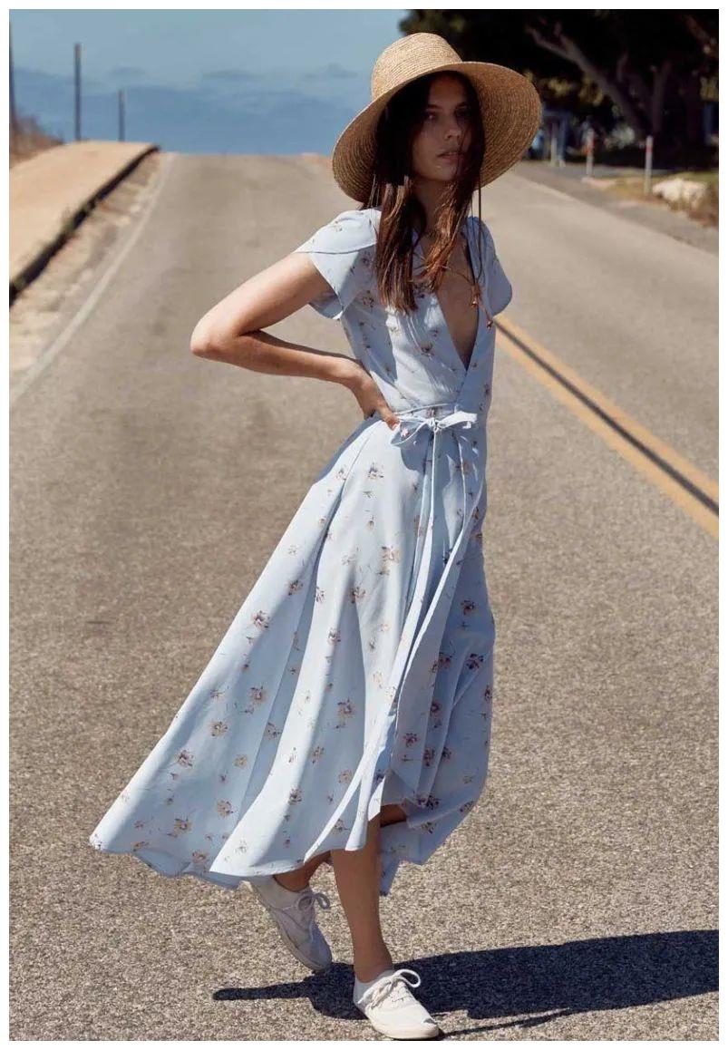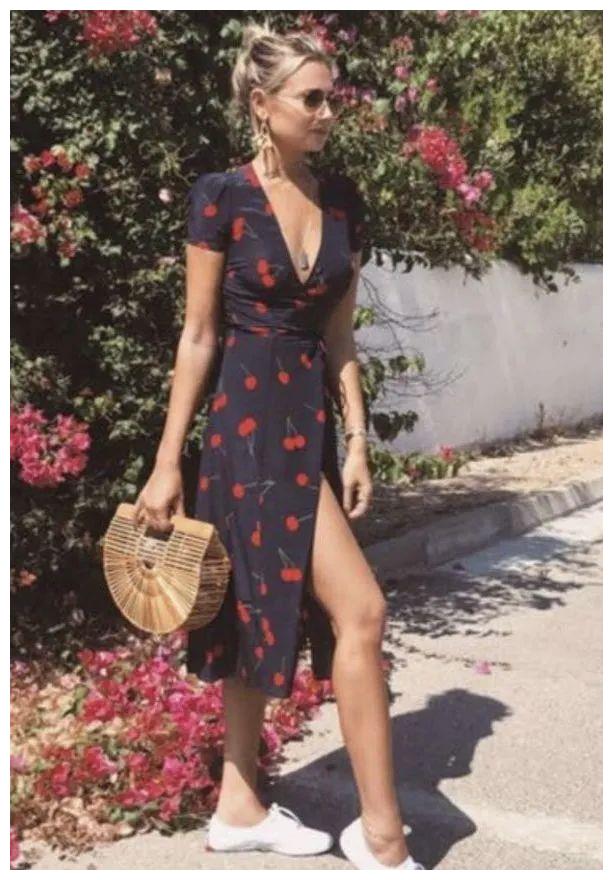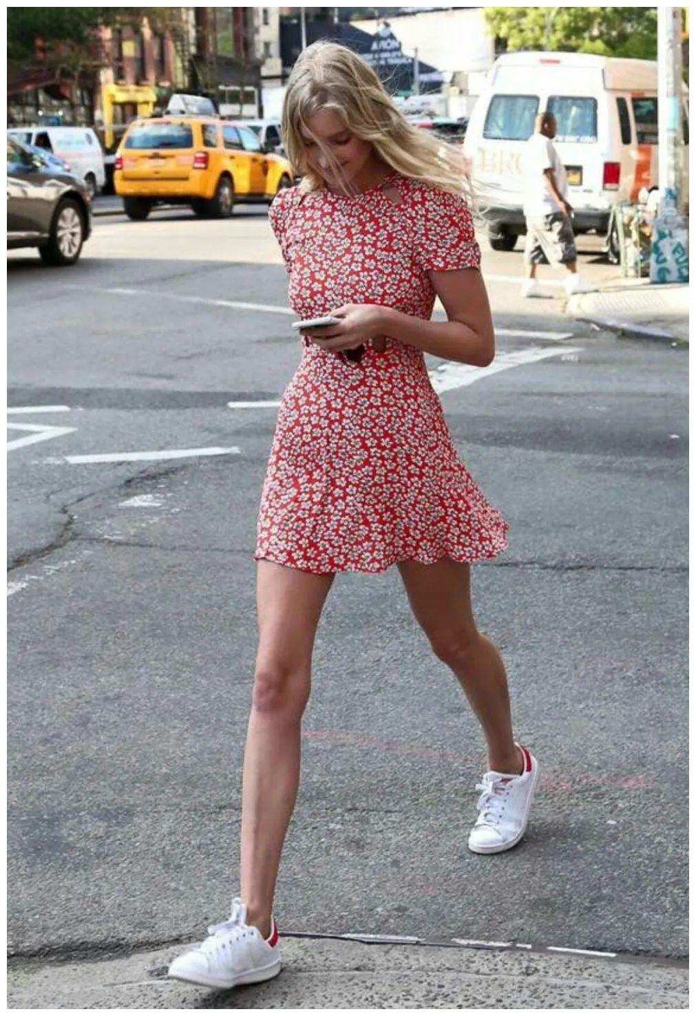当然姐还是更建议各位选择花色本身就比较素雅的印花裙来和运动鞋搭配,