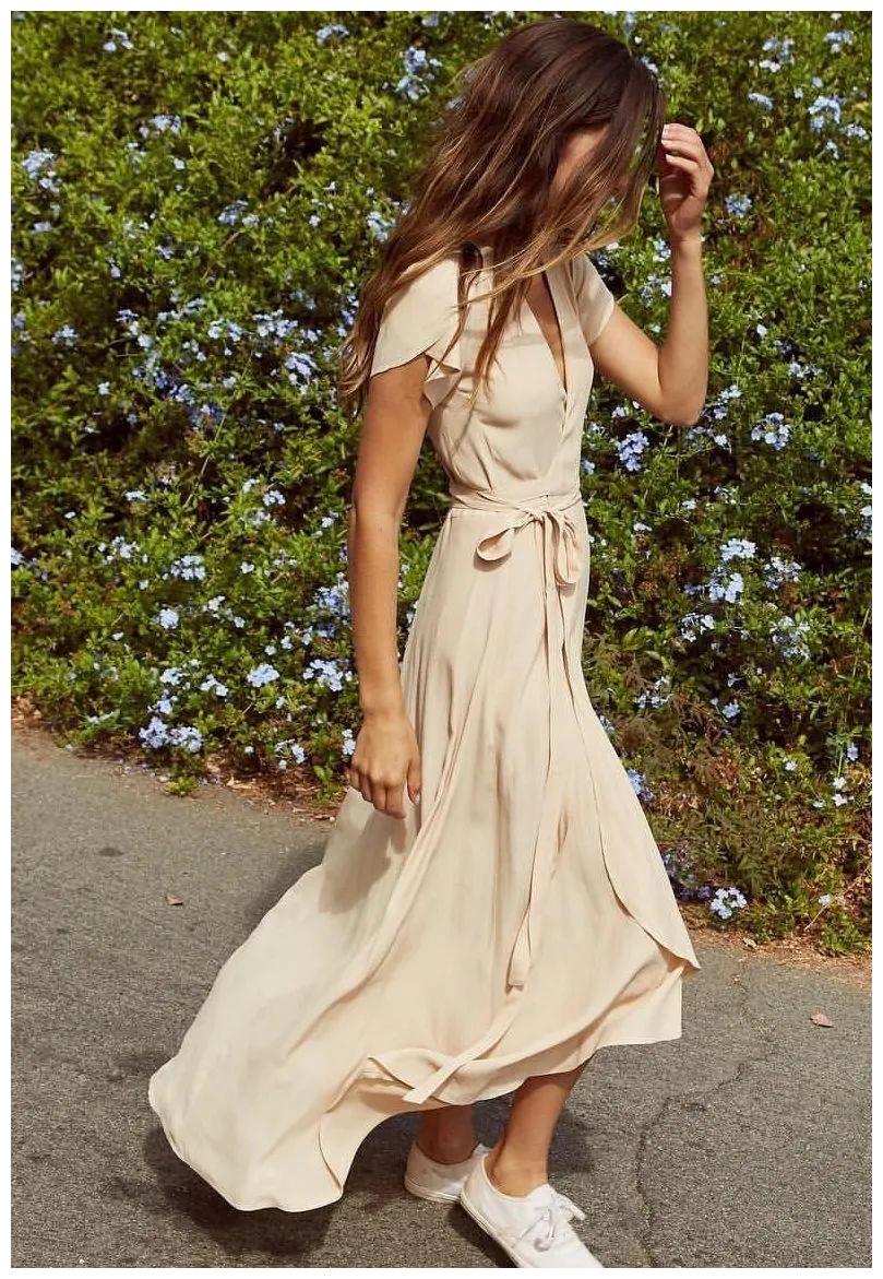 休闲中性风的运动鞋,可以恰到好处地中和掉茶歇裙自带的性感标签。