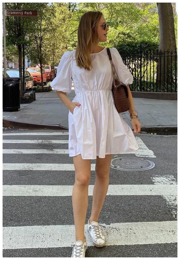 总而言之,泡泡袖连衣裙+运动鞋=减龄清甜又优雅养眼,这个夏日绝对值得pick起来!