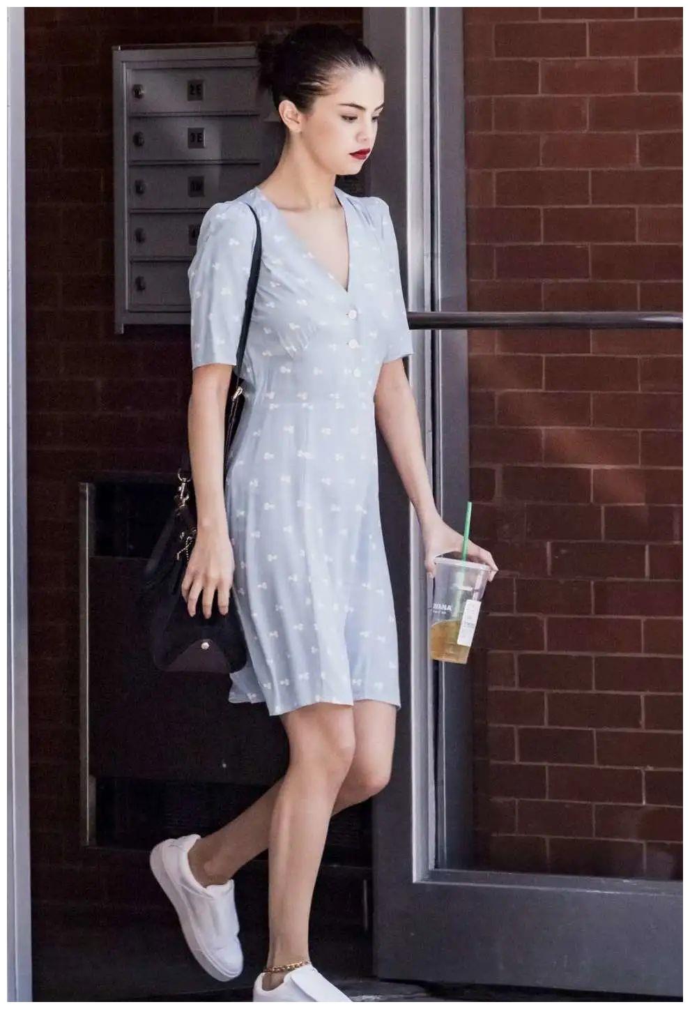 而茶歇裙自带高腰线的设计,使得它本身就能显高显瘦显腰细显腿长,所以即便是和平底运动鞋搭一起,也照样能够穿出黄金比例来,简直美得不要不要的。