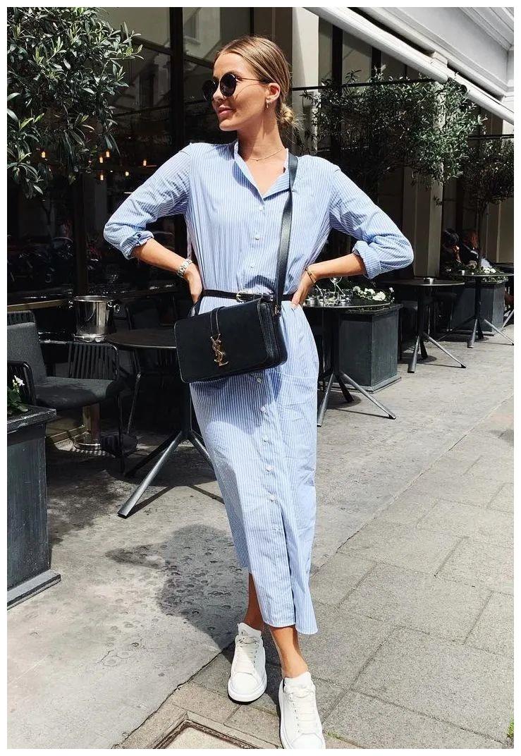 而加入系带设计,或者用腰带装点衬衫裙,则更能够扬长避短突显出我们的身材优势,即便与平底运动鞋搭在一起,也照样能够穿出要窈窕身姿。