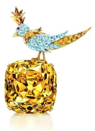 黄色代表轻快、活力与华贵。蒂芙尼黄钻是全球至今发现最大的黄钻之一,1877年在南非的金伯利矿被开采出来,原石重达287.42克拉,最终被切割后,成为一枚重128.54克拉、82个切割面的枕形黄钻。