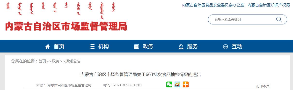 对抽检中发现的不合格食品,内蒙古自治区市场监督管理局已责令呼和浩特市、包头市、兴安盟、通辽市、赤峰市、锡林郭勒盟、乌兰察布市、巴彦淖尔市等市场监管部门立即组织开展核查处置,查清产品流向,督促企业采取下架召回不合格产品等措施控制风险;对违法违规行为,依法从严处理;及时将企业采取的风险防控措施和核查处置情况向社会公开,并向内蒙古自治区市场监督管理局报告。