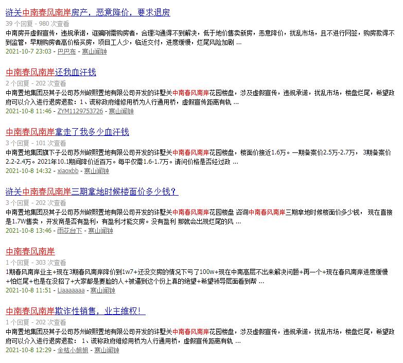 截止目前,中南春风南岸已经出现过多次维权,多是因为“降价”问题引起。经查,中南春风南岸的这轮降价潮,从6月底延续到了十月份 。早在年中,中南在苏州的多个楼盘就开始推行内部员工优惠购房,房源折扣力度达5-7折,这其中就包括中南春风南岸楼盘,彼时就引发了市场的广泛关注。当时中南回应称:“只是员工优惠,是根据市场情况的一盘一策。”